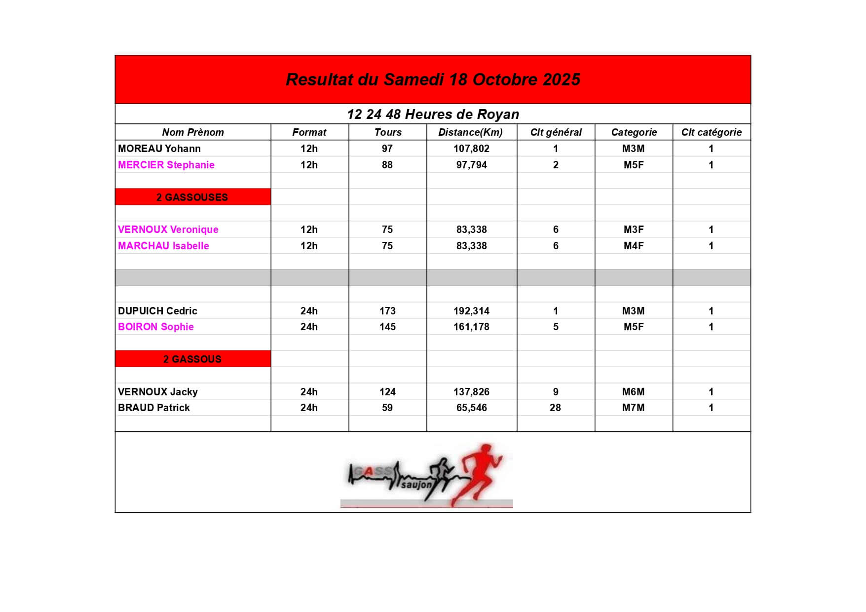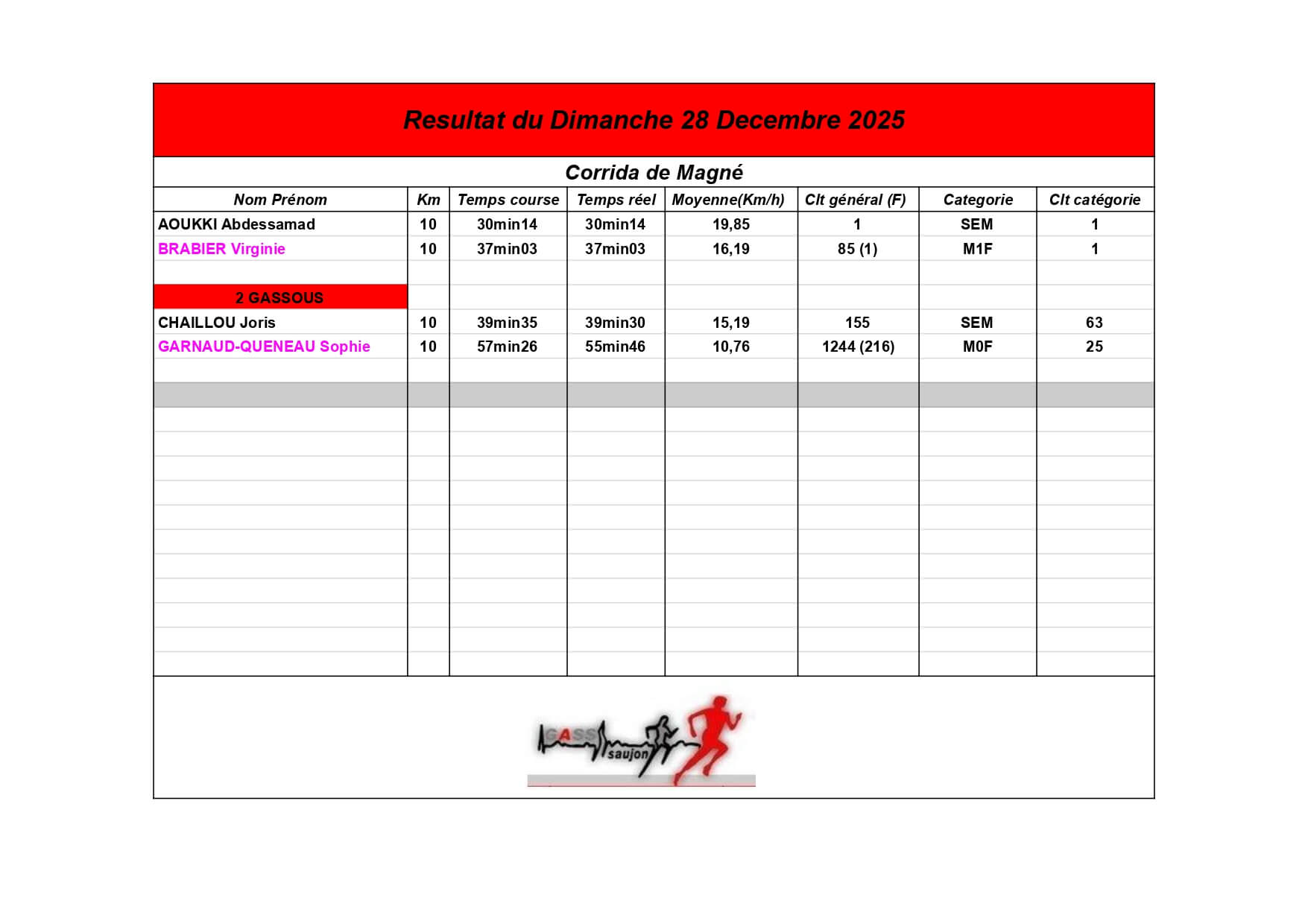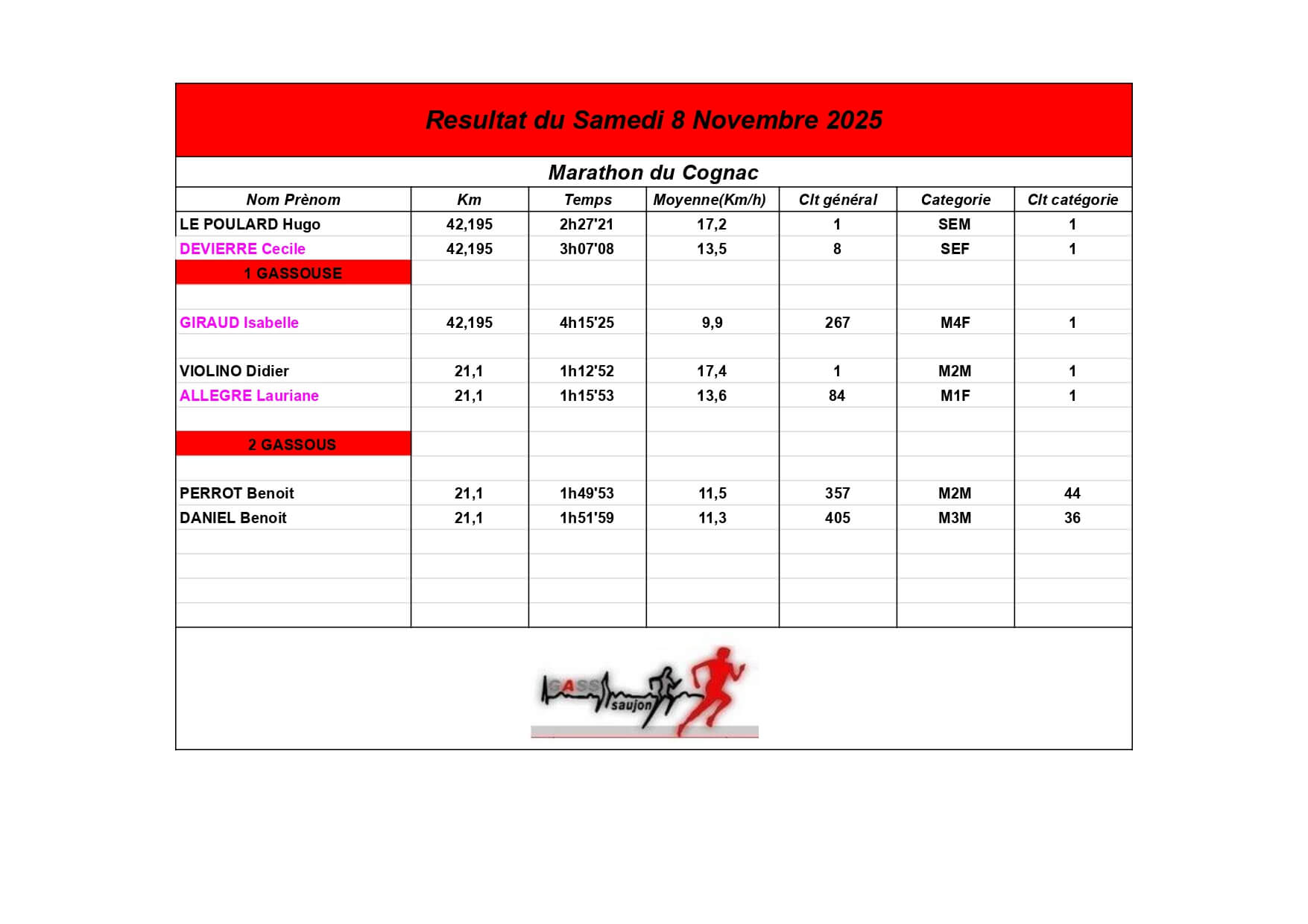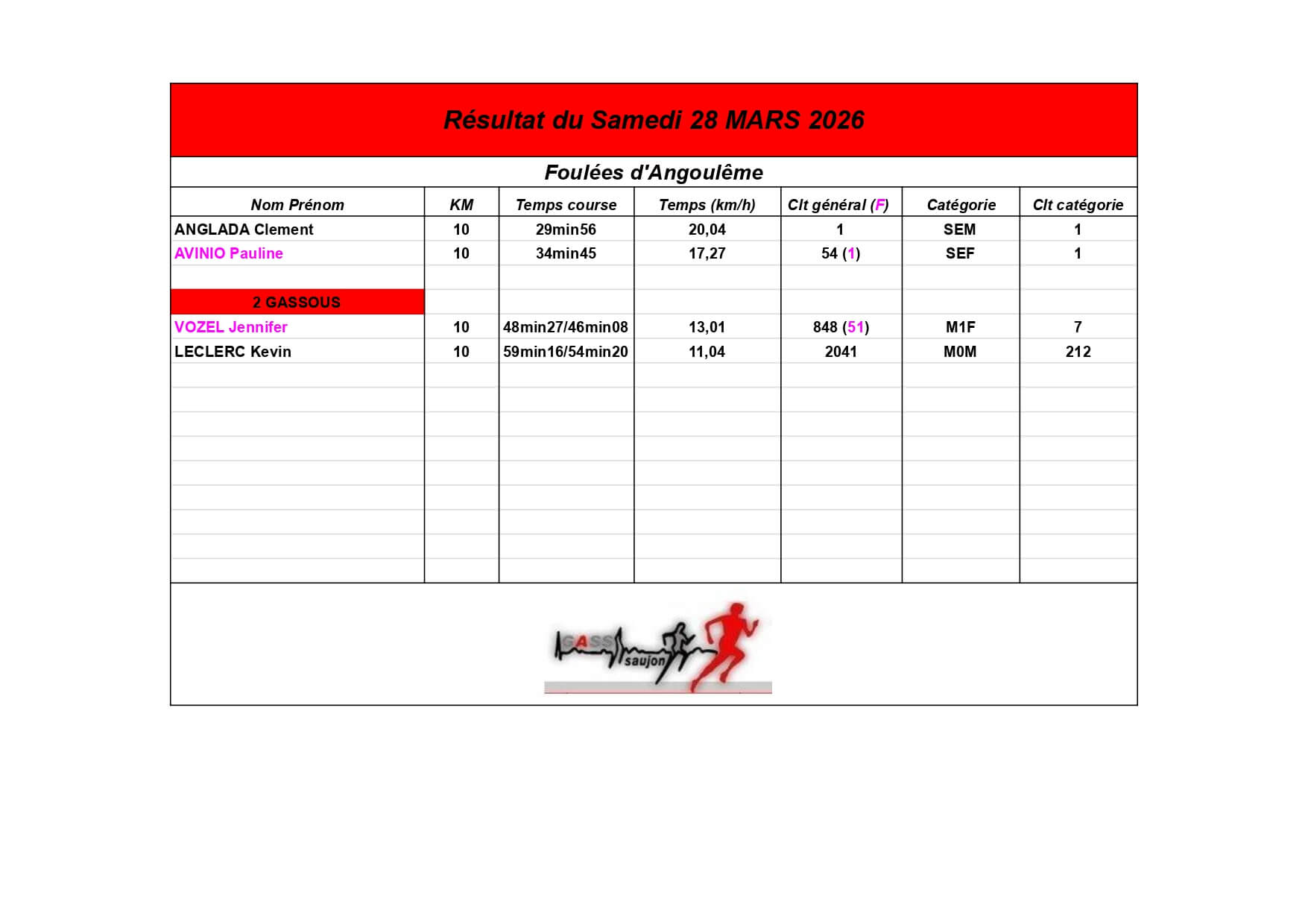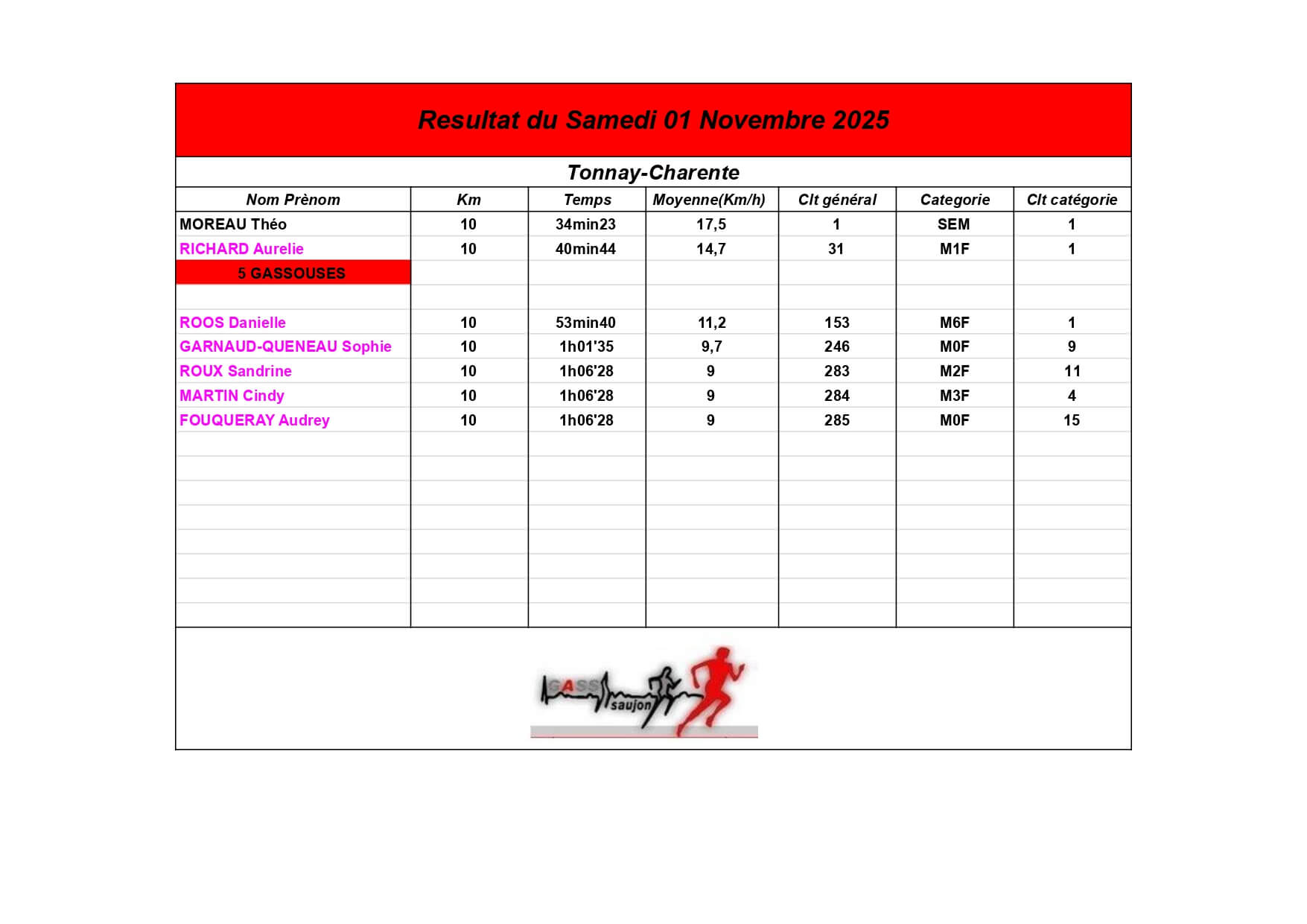 Au Groupement Athlétique Saujon Seudre, nos coureurs et marcheurs brillent sur les parcours locaux et au-delà !