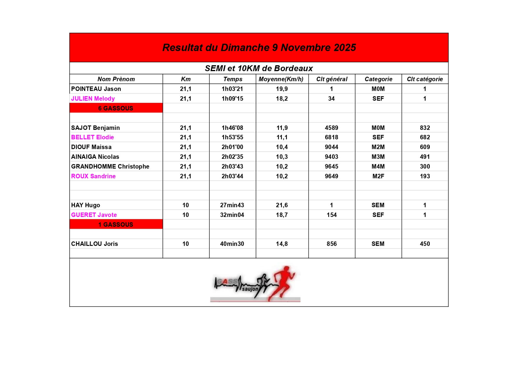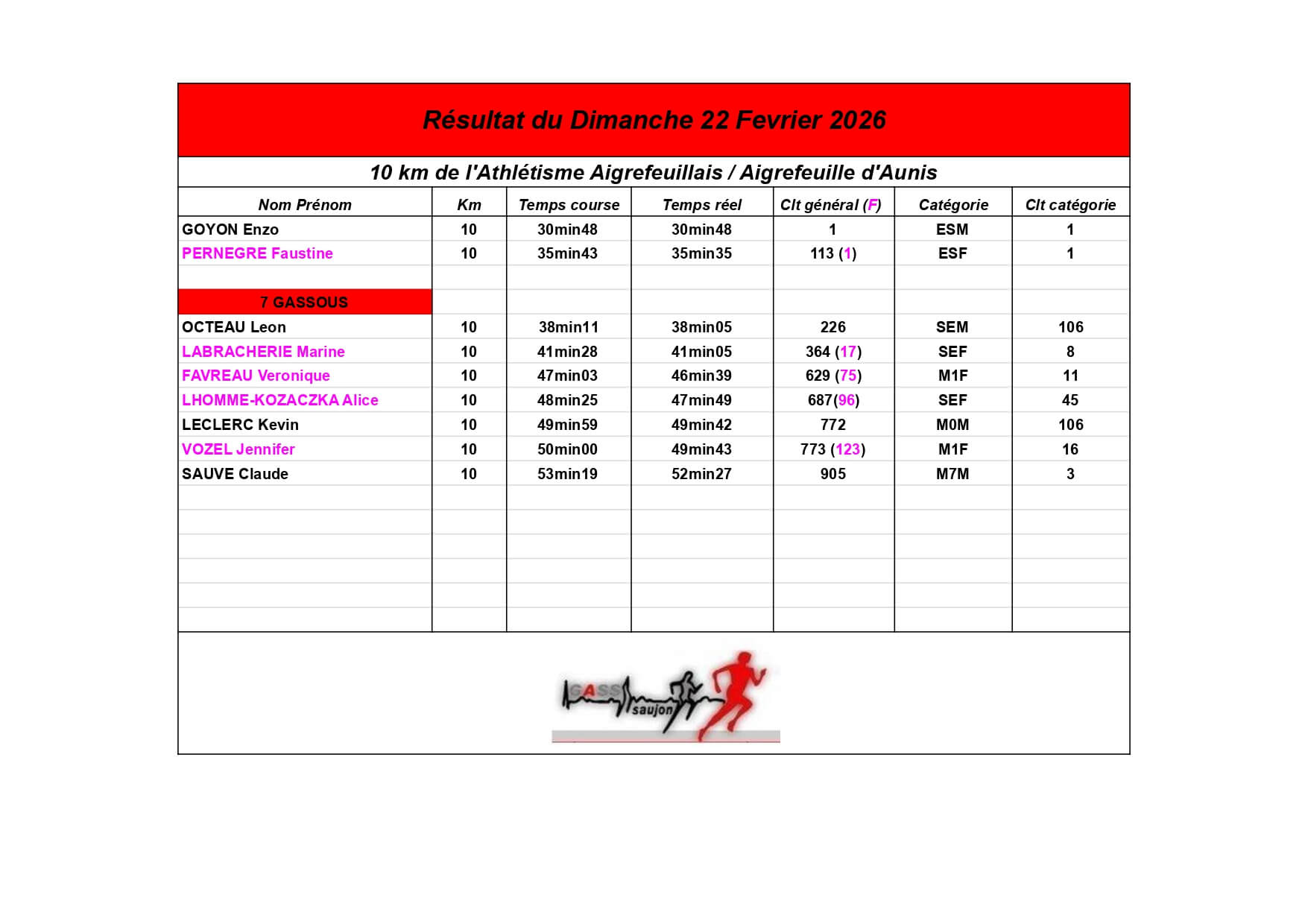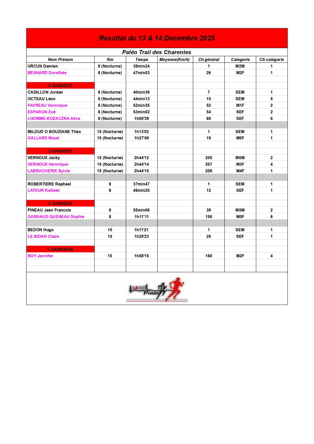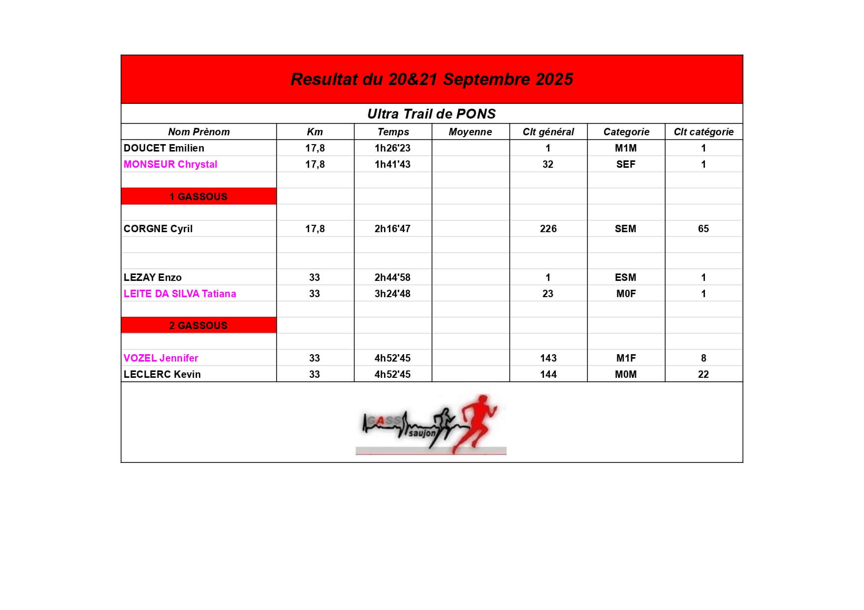 Au Groupement Athlétique Saujon Seudre, nos coureurs et marcheurs brillent sur les parcours locaux et au-delà !