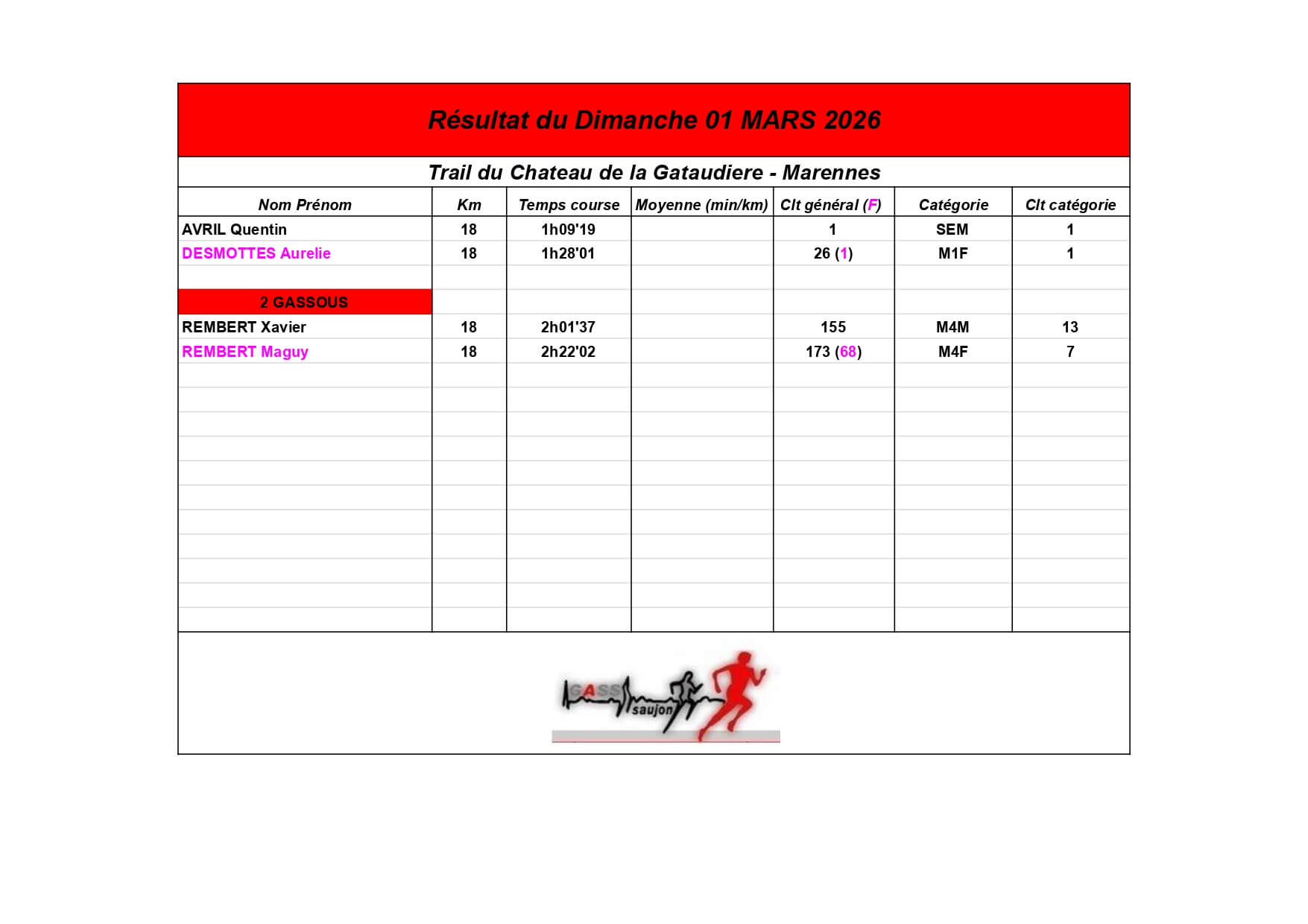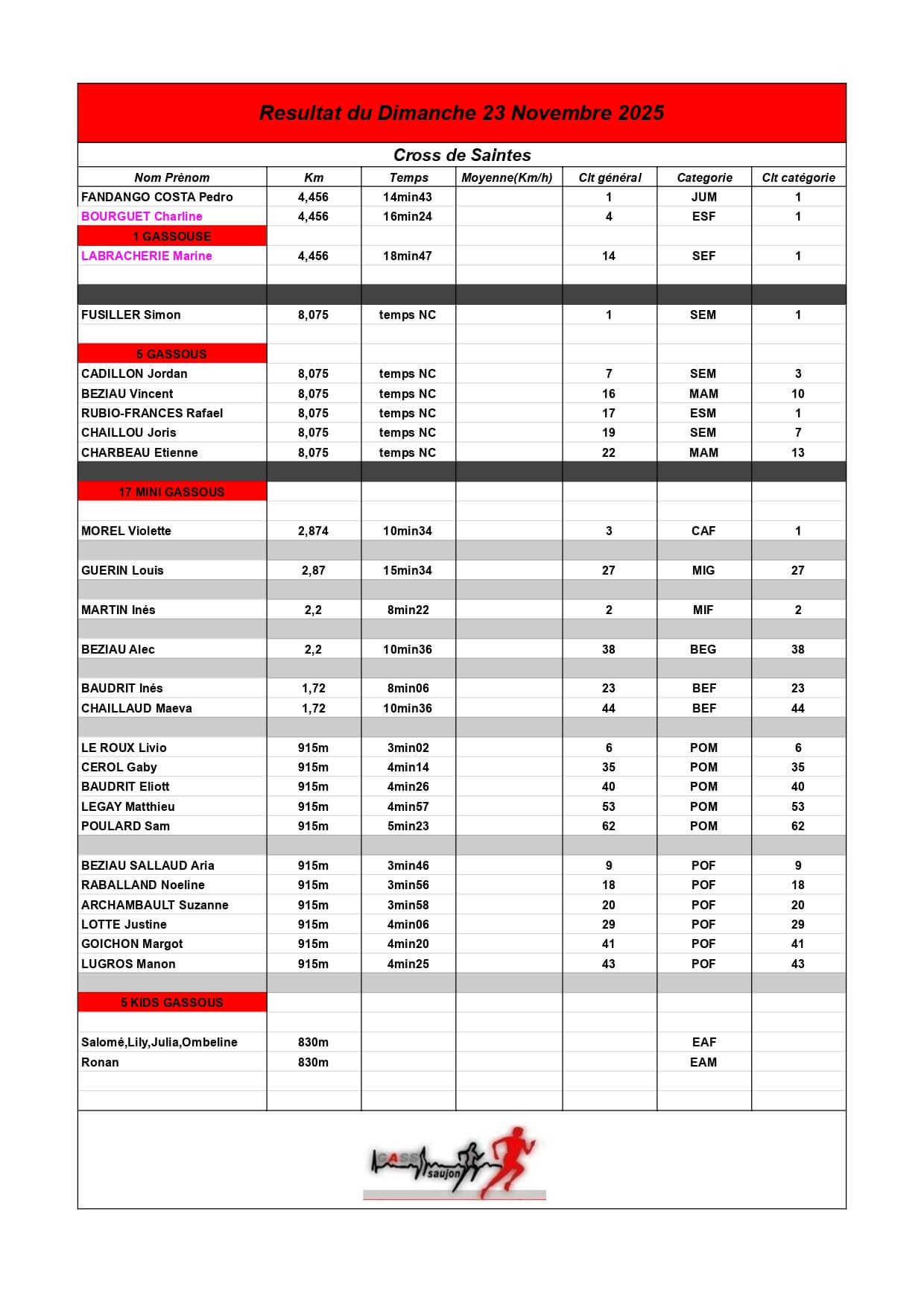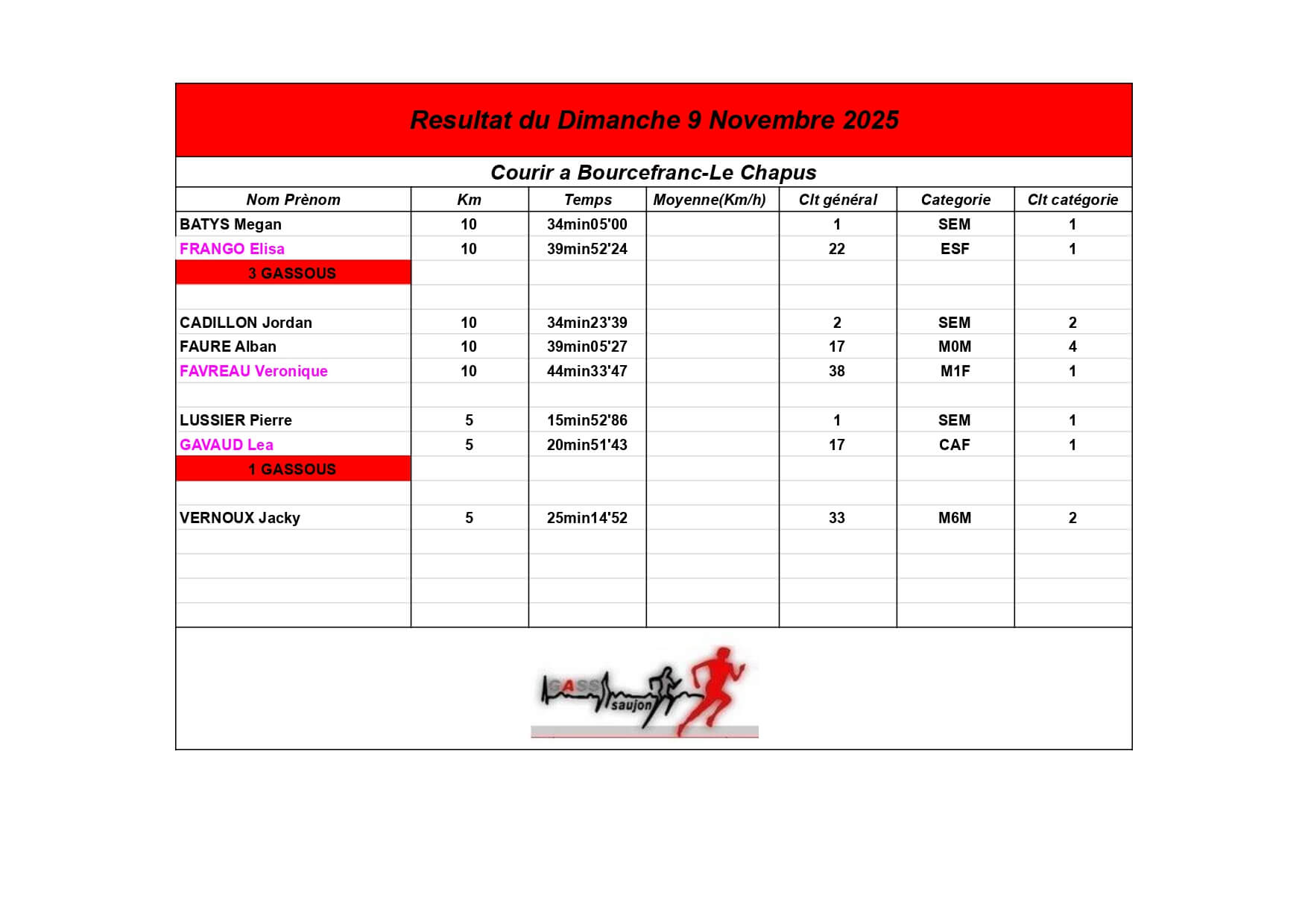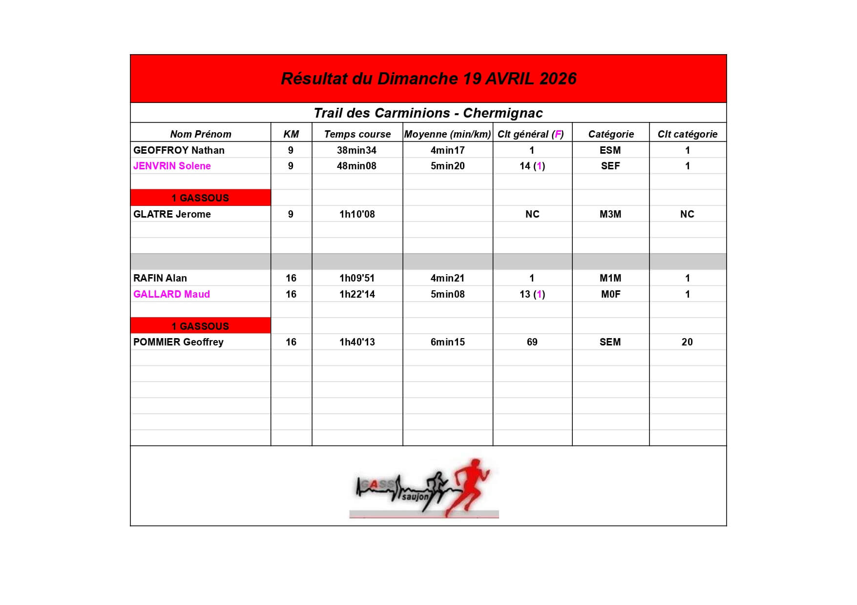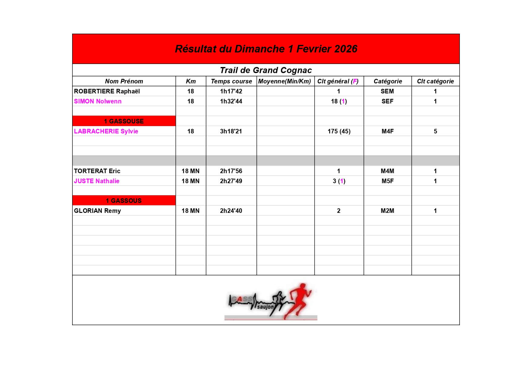 Au Groupement Athlétique Saujon Seudre, nos coureurs et marcheurs brillent sur les parcours locaux et au-delà !