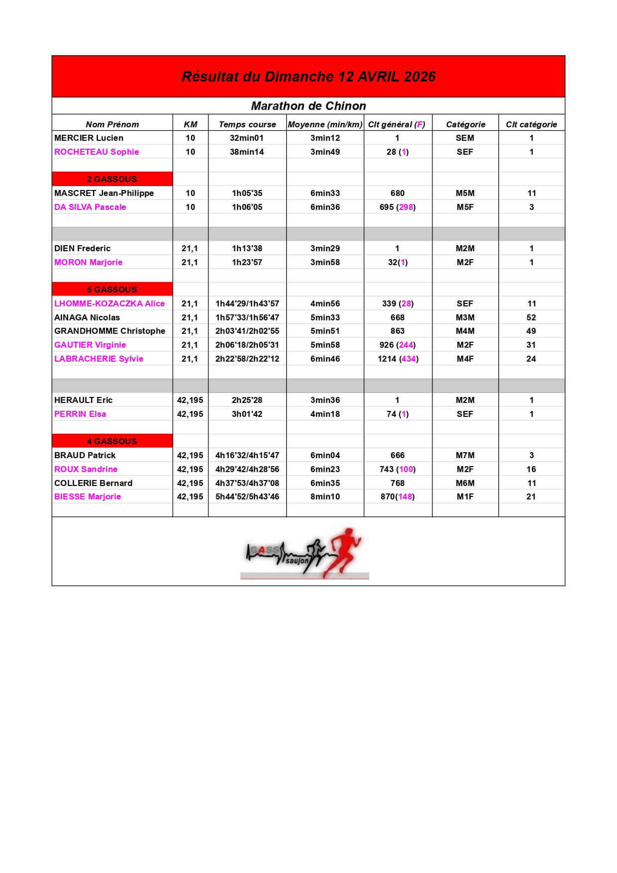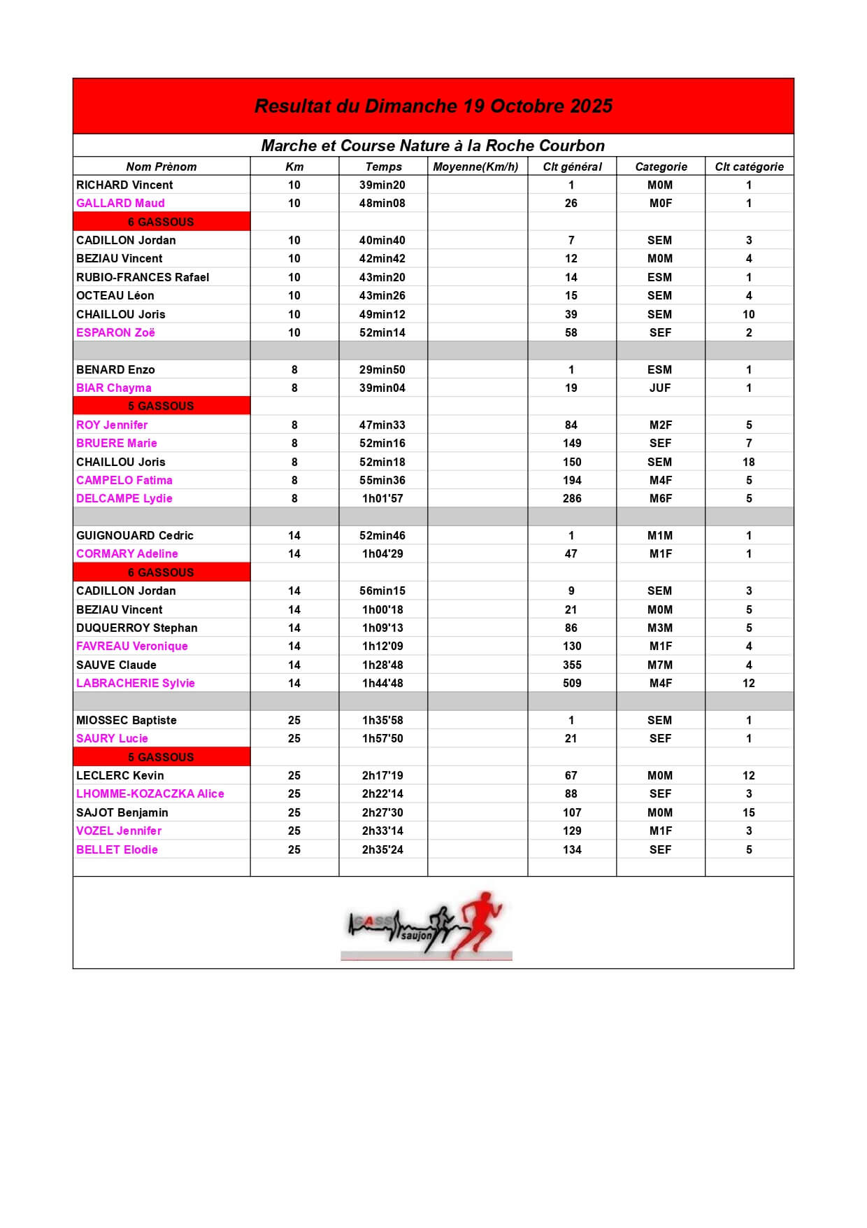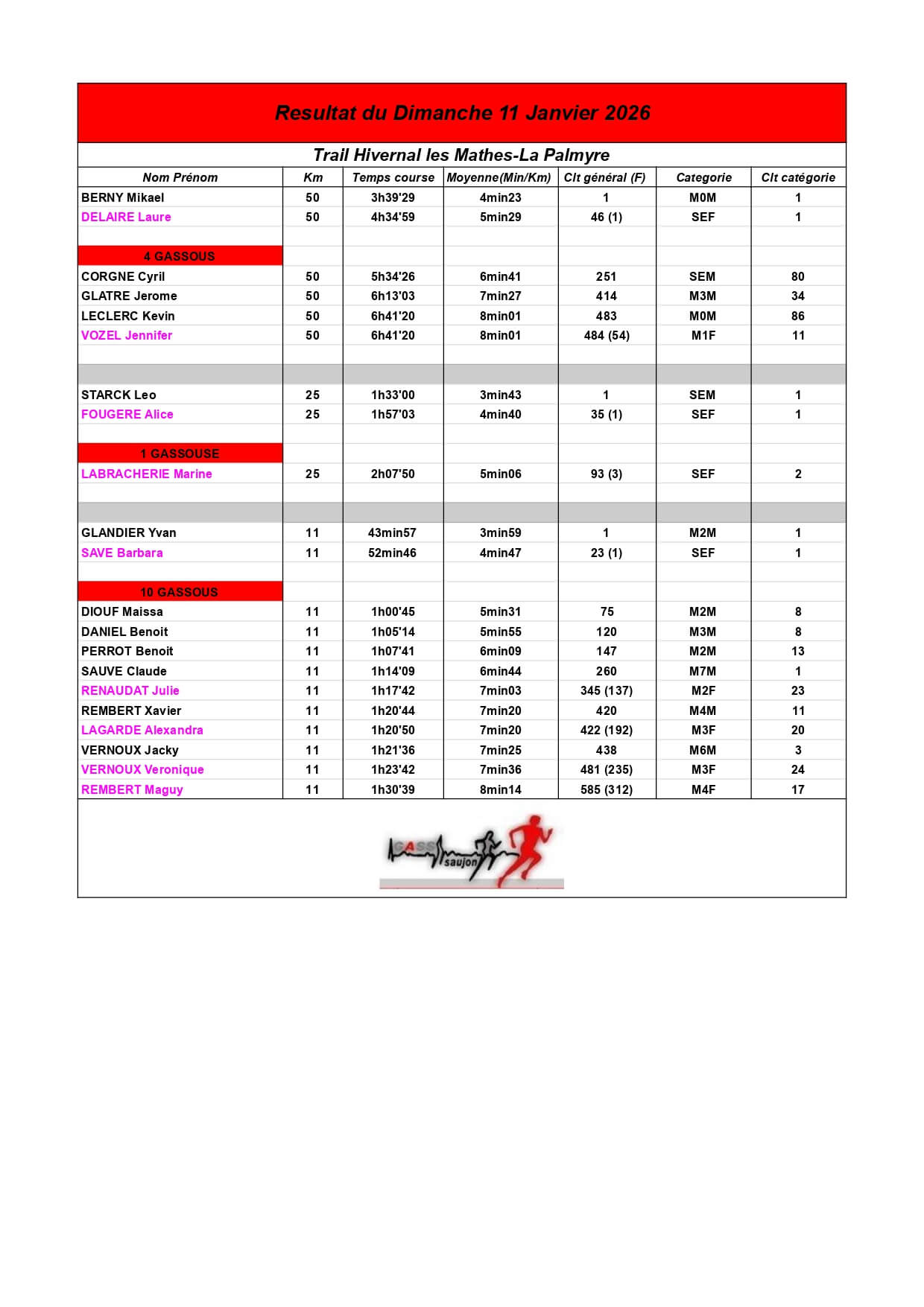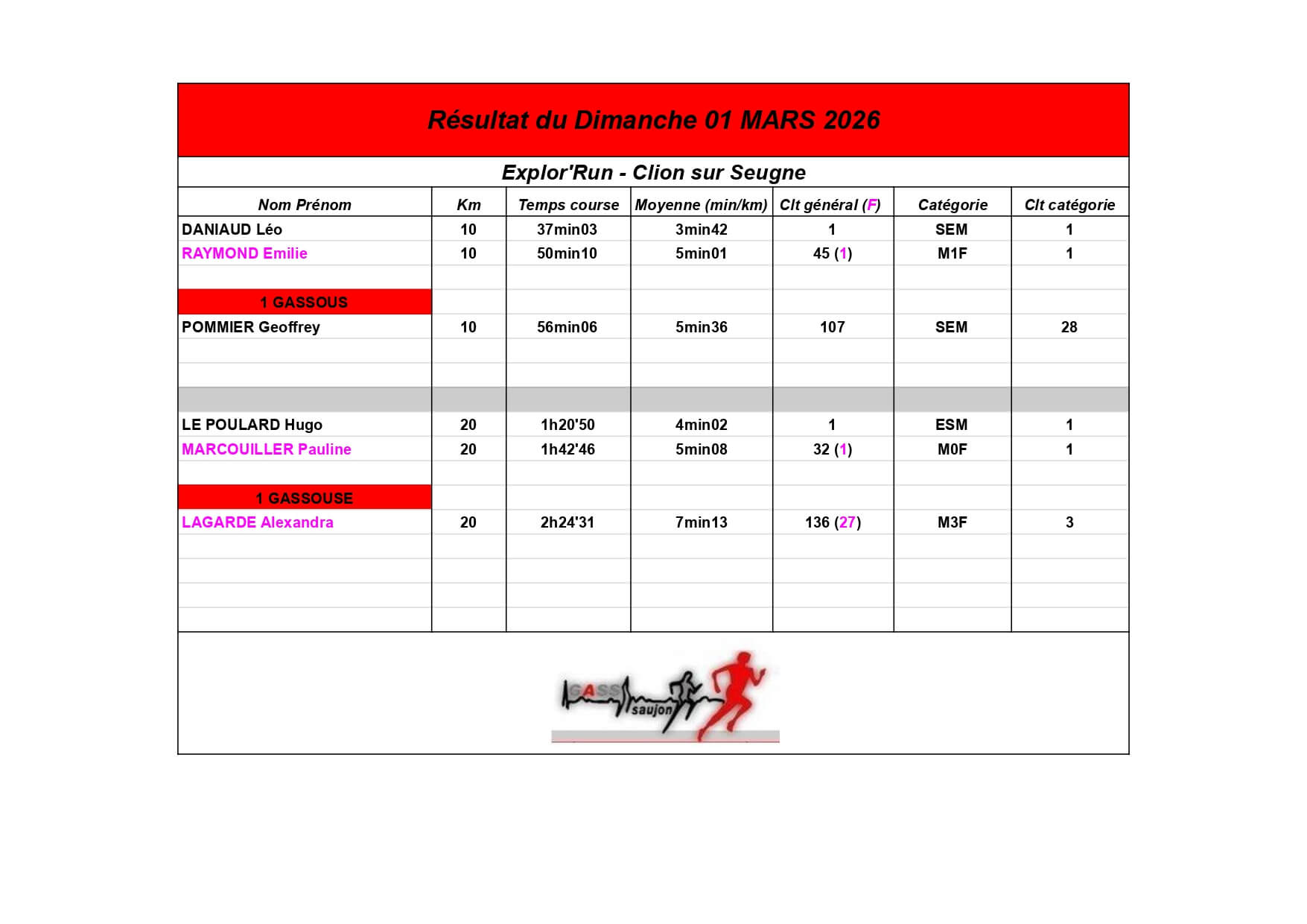 Au Groupement Athlétique Saujon Seudre, nos coureurs et marcheurs brillent sur les parcours locaux et au-delà !