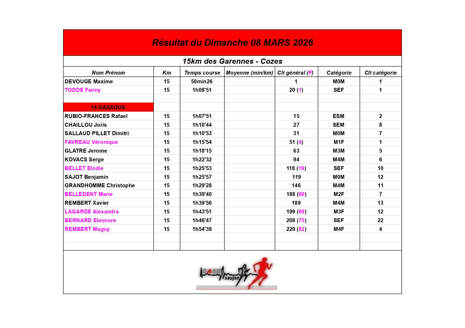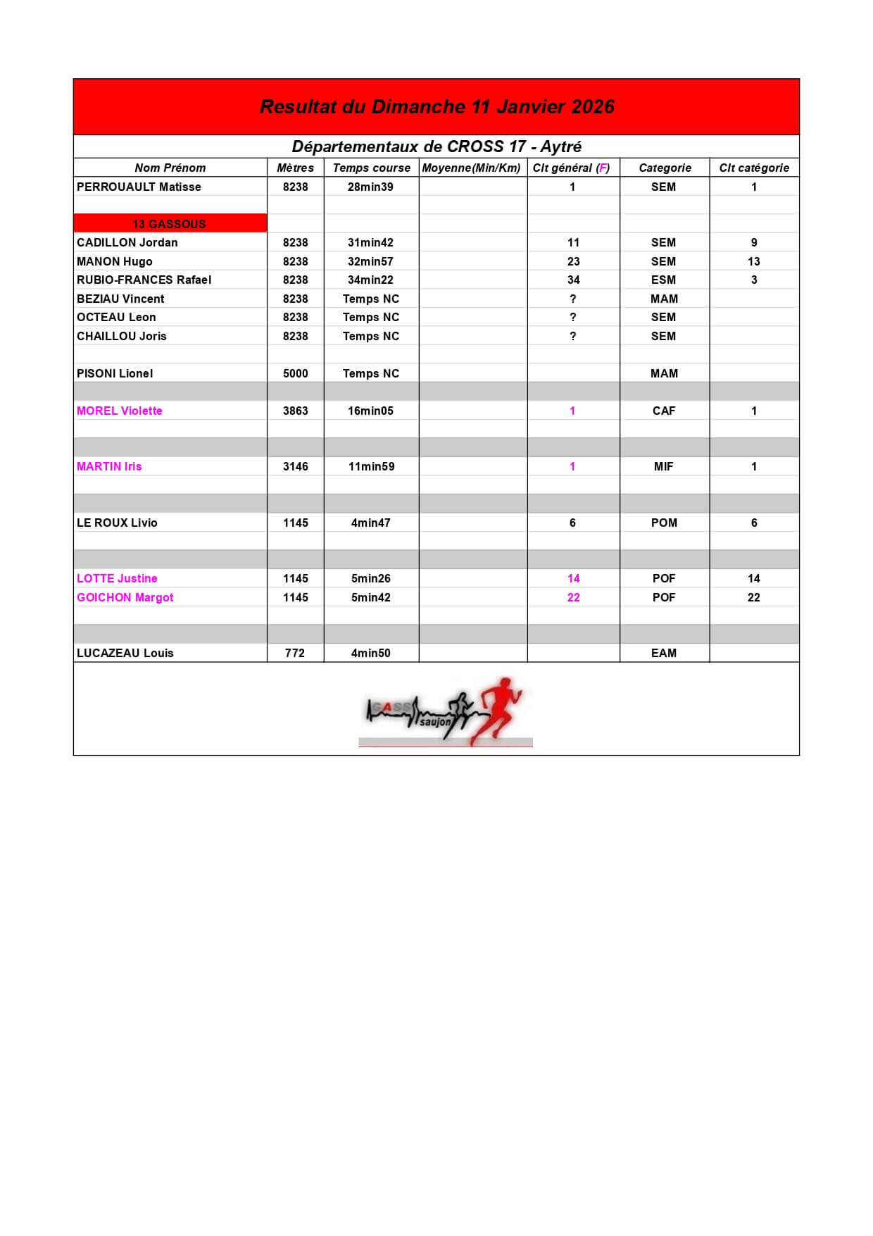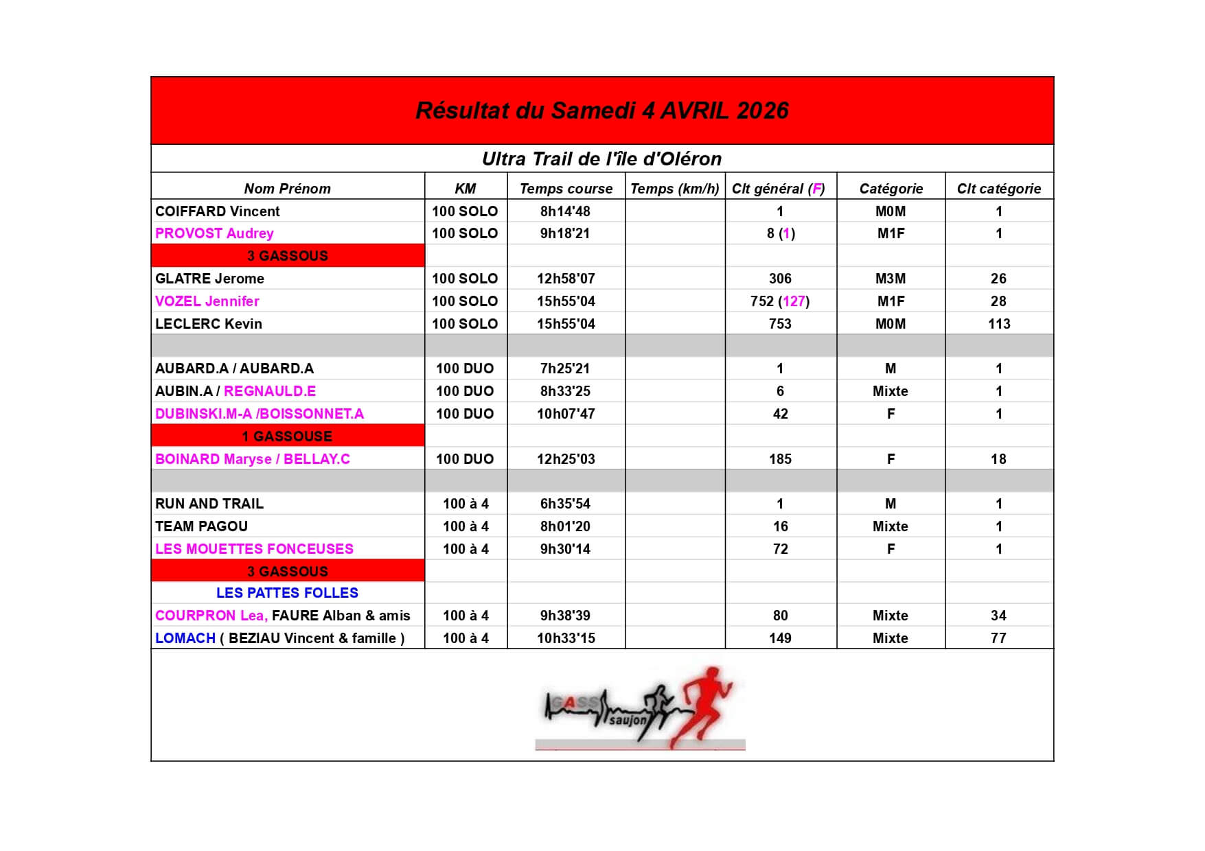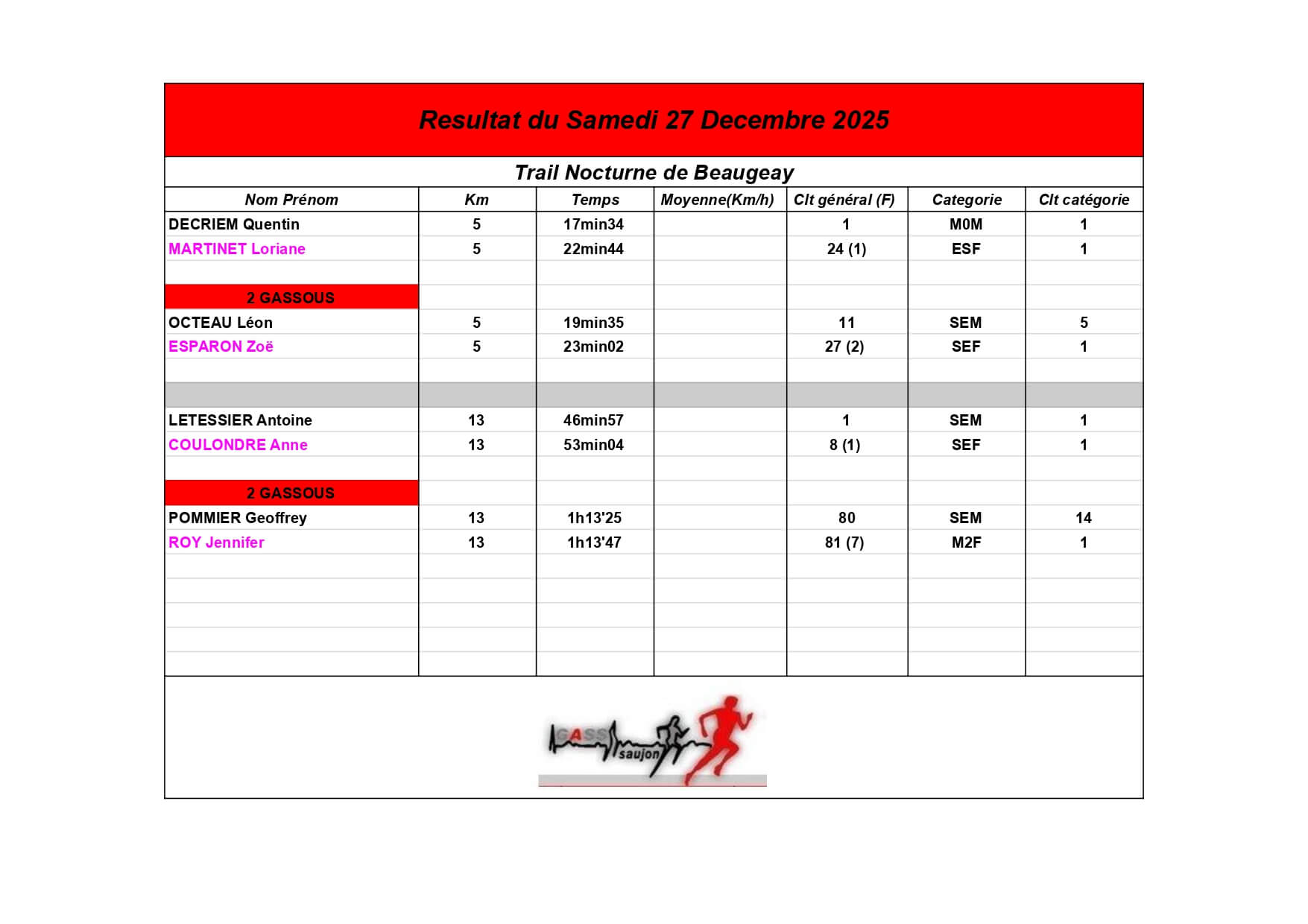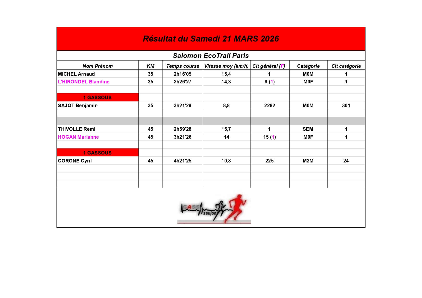 Au Groupement Athlétique Saujon Seudre, nos coureurs et marcheurs brillent sur les parcours locaux et au-delà !