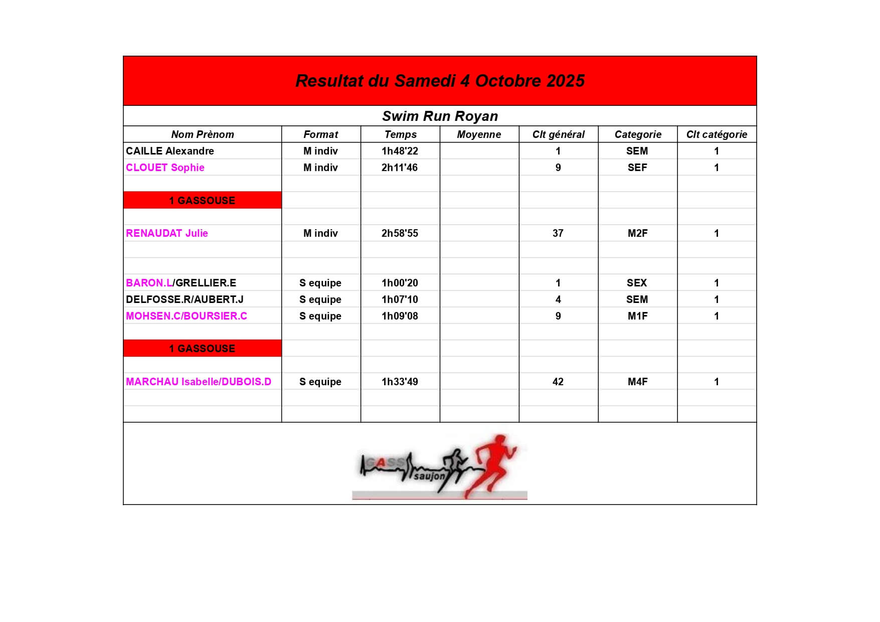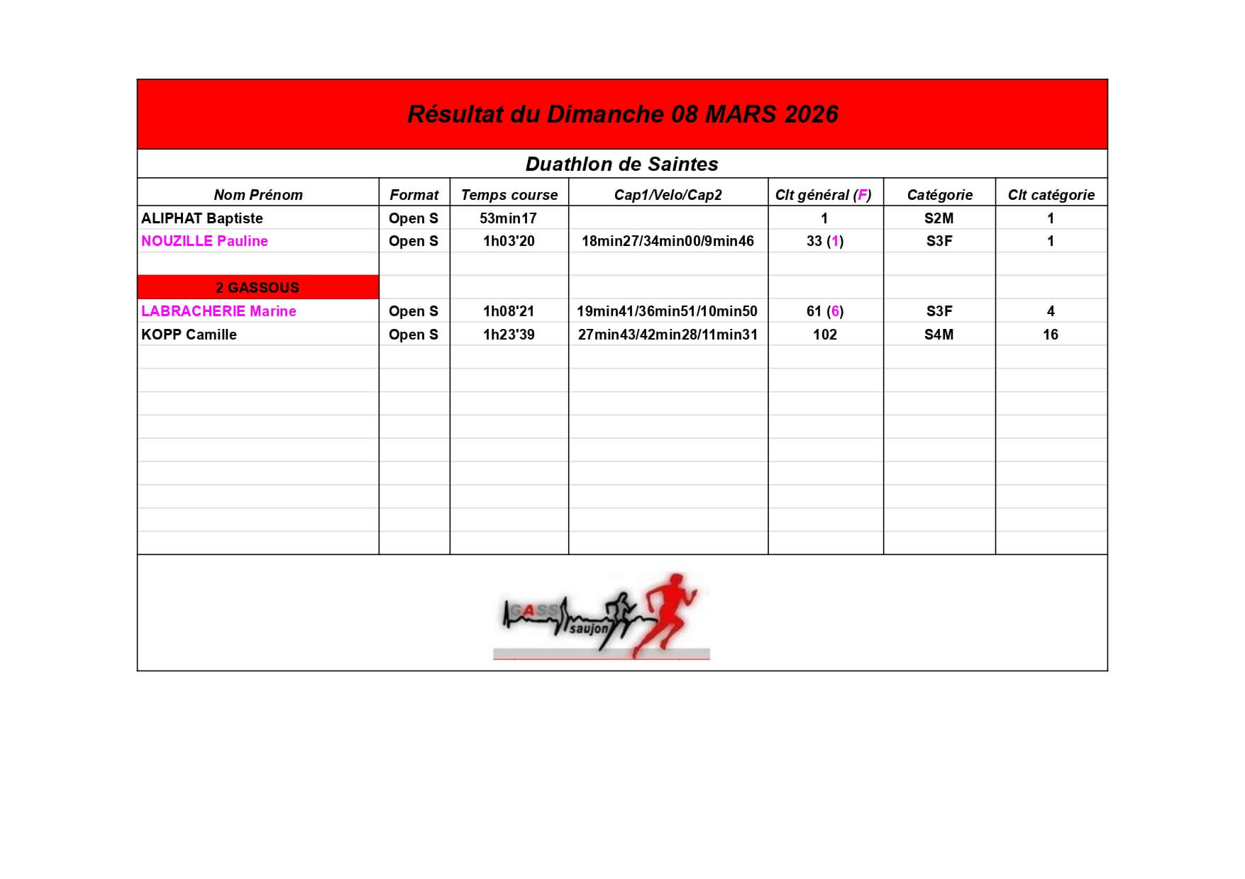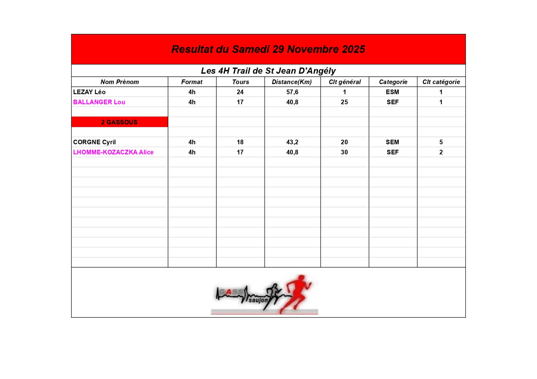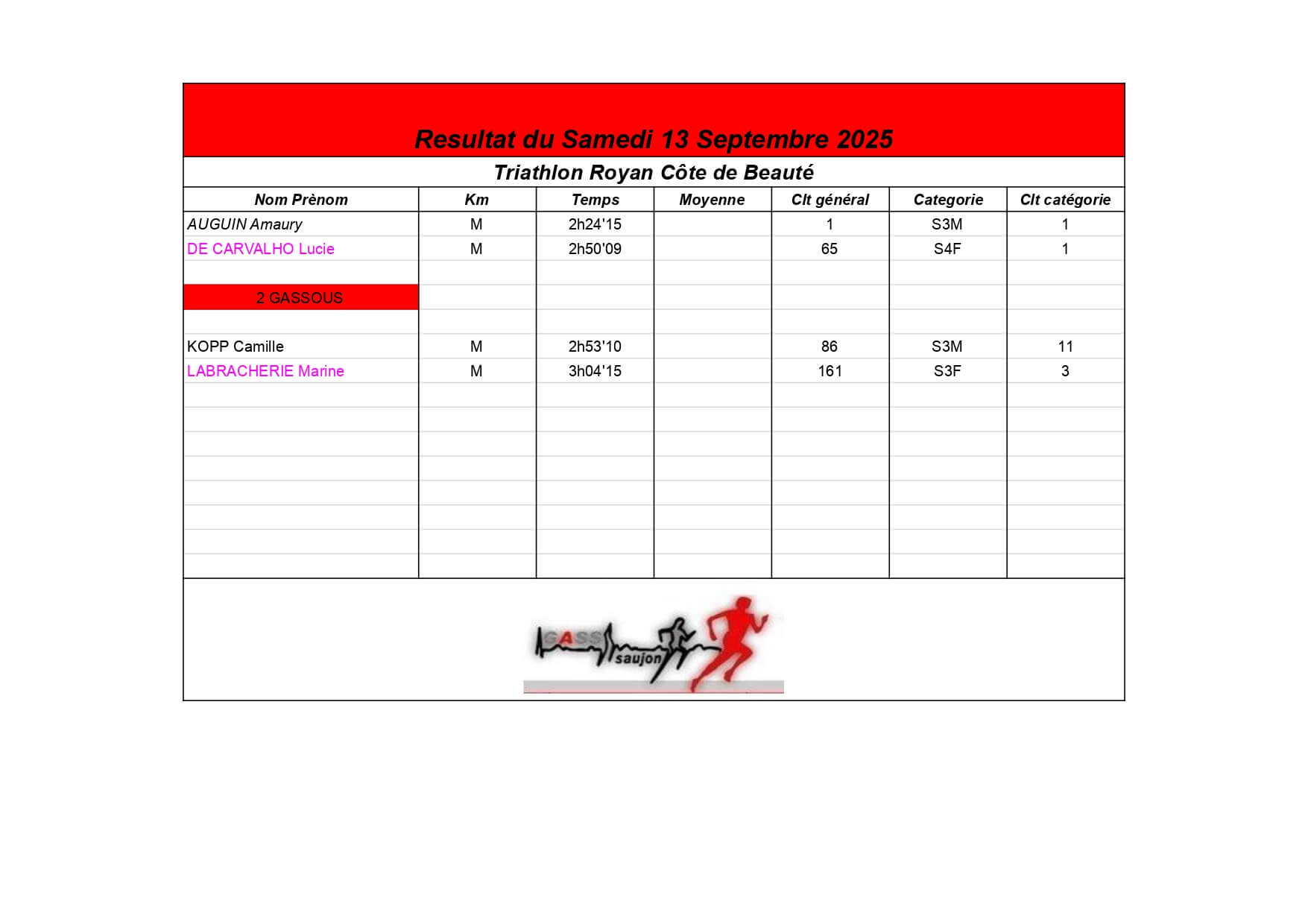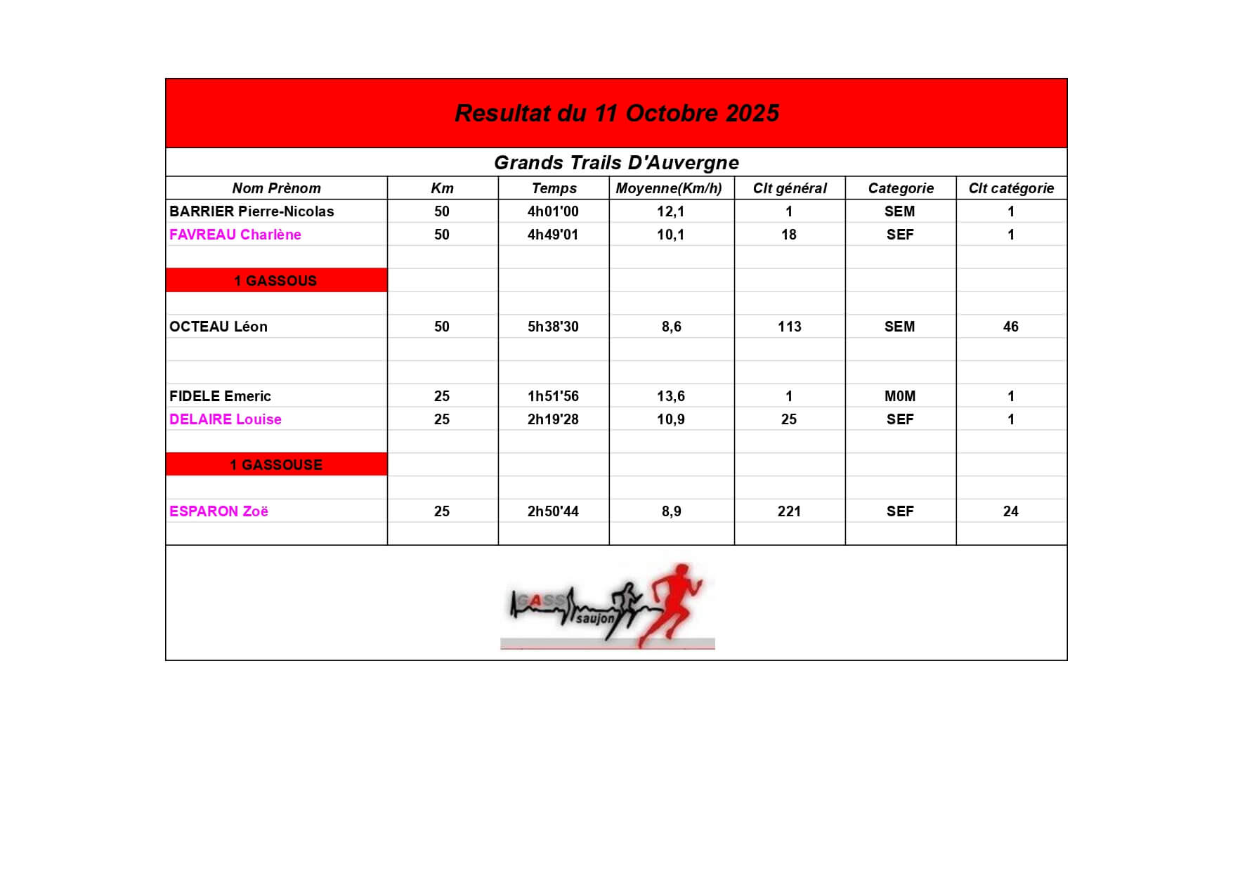 Nous sommes fiers de nos athlètes, petits et grands, qui portent haut les couleurs du GASS à chaque défi sportif !