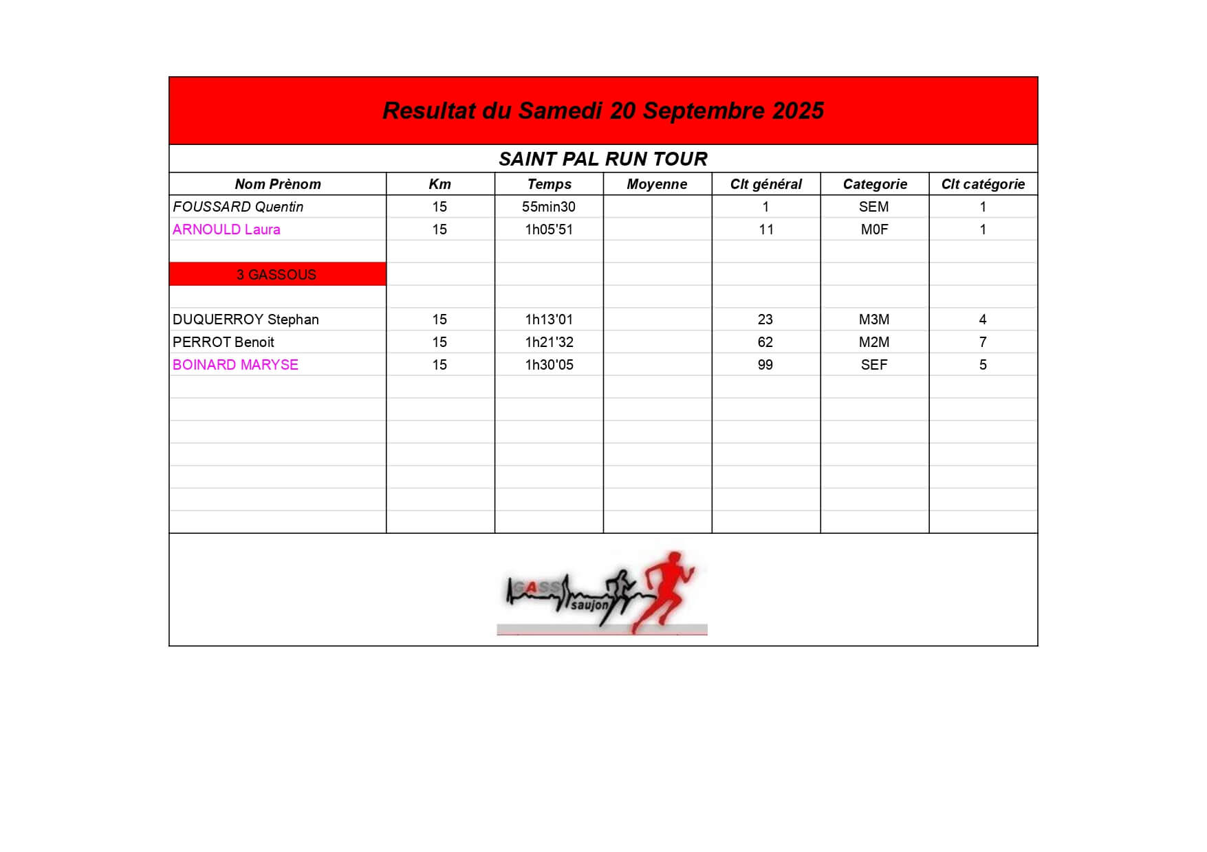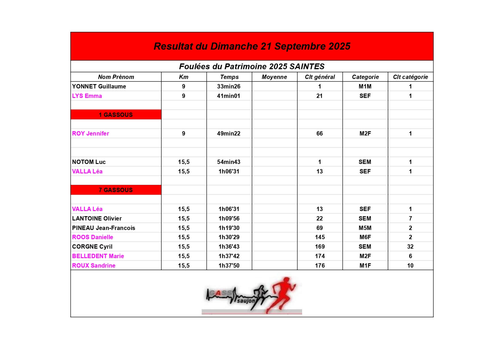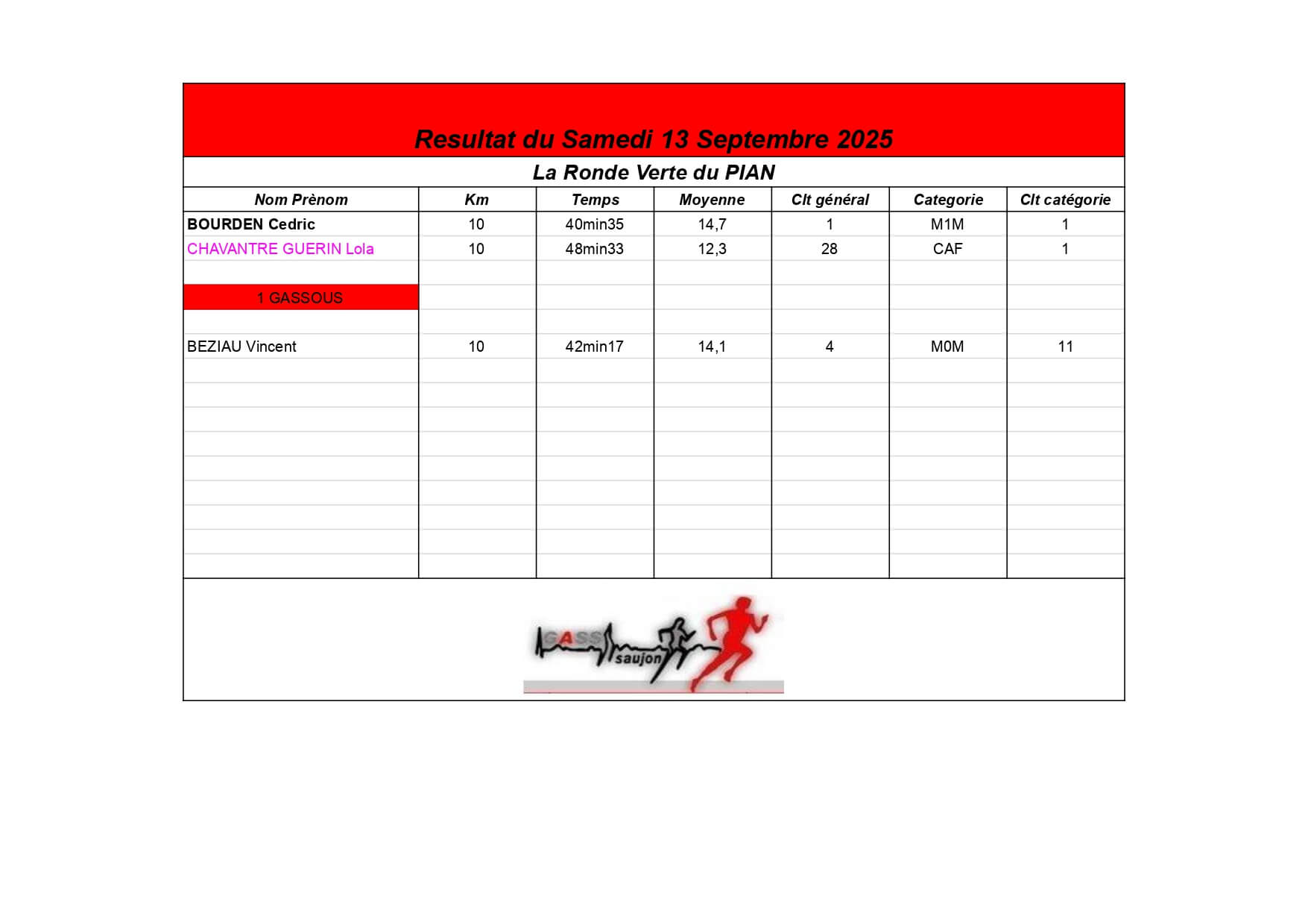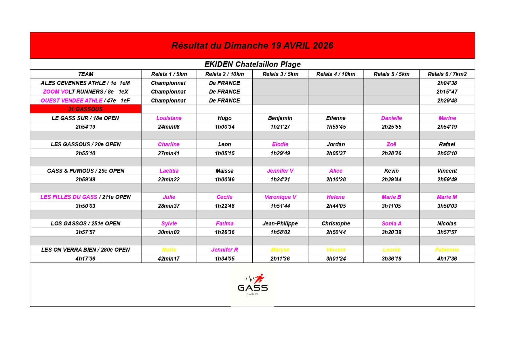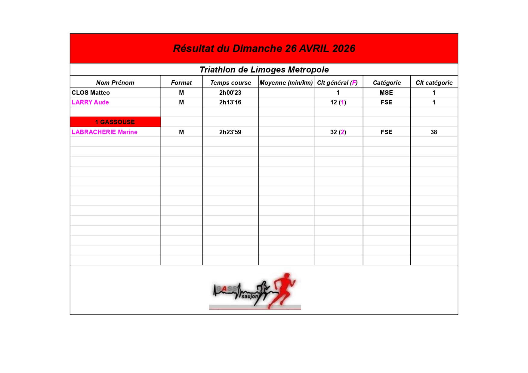 Nous sommes fiers de nos athlètes, petits et grands, qui portent haut les couleurs du GASS à chaque défi sportif !