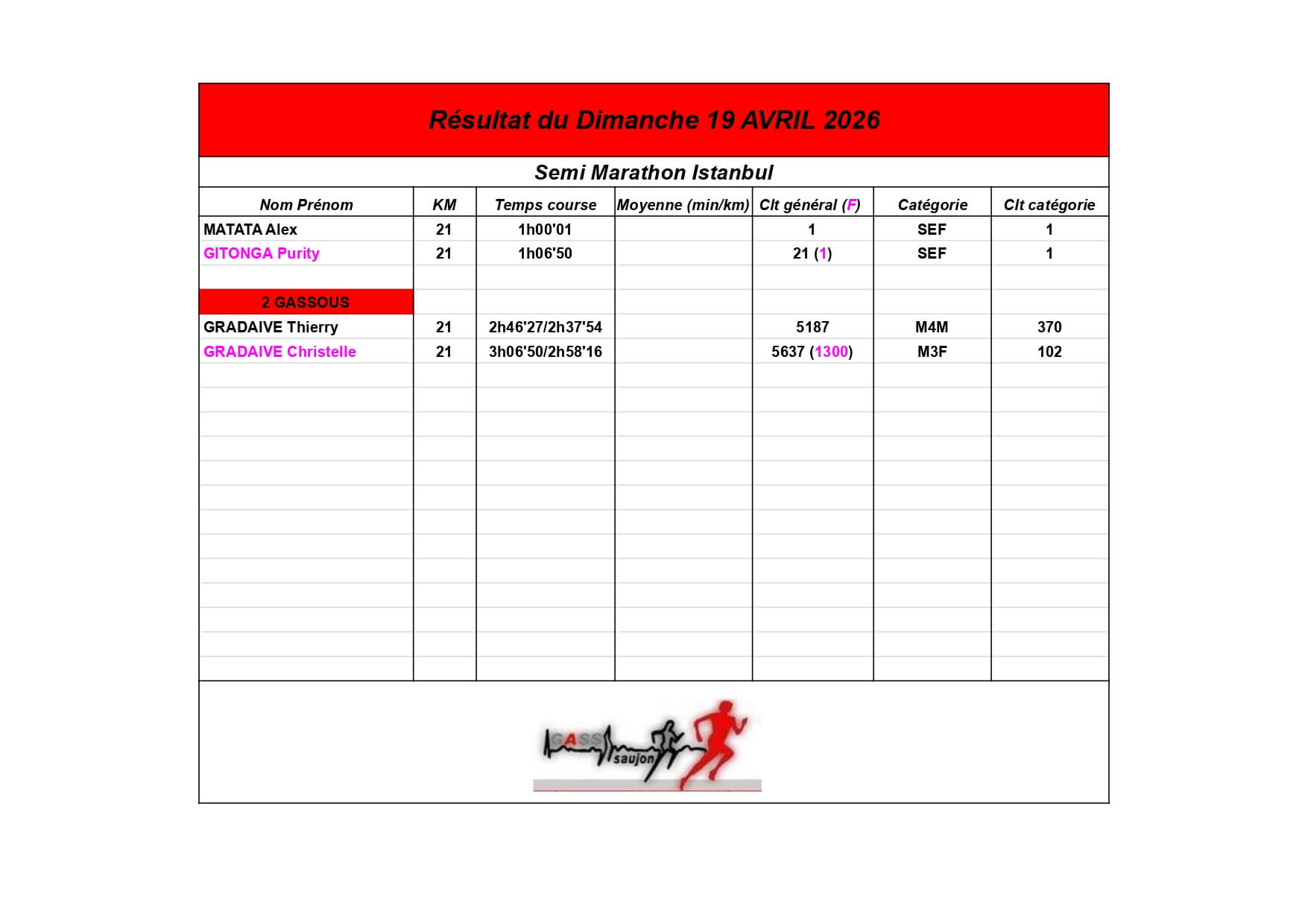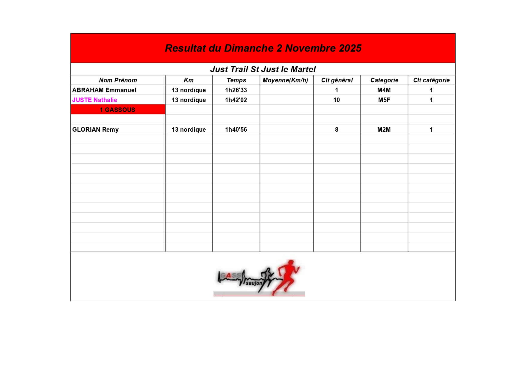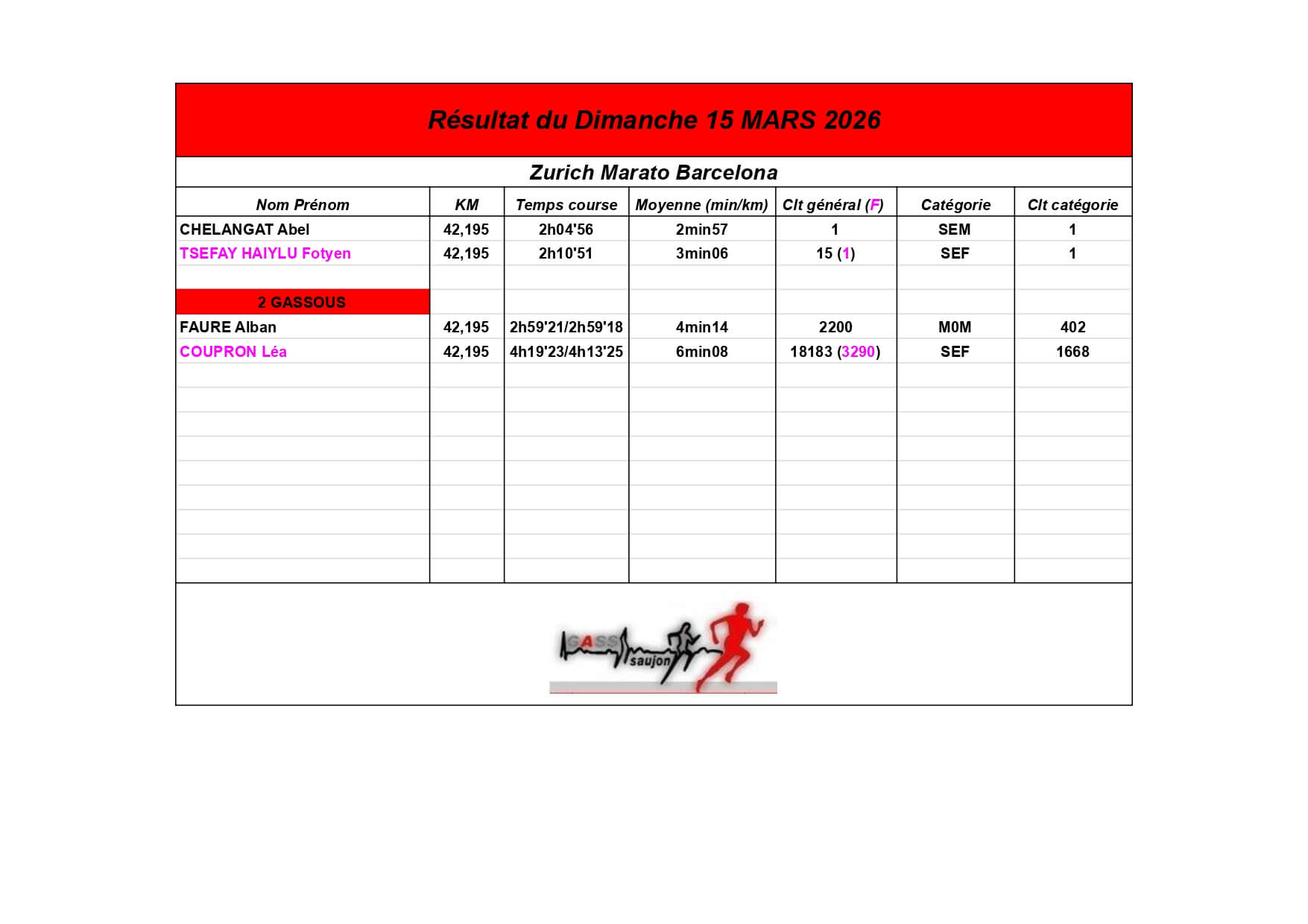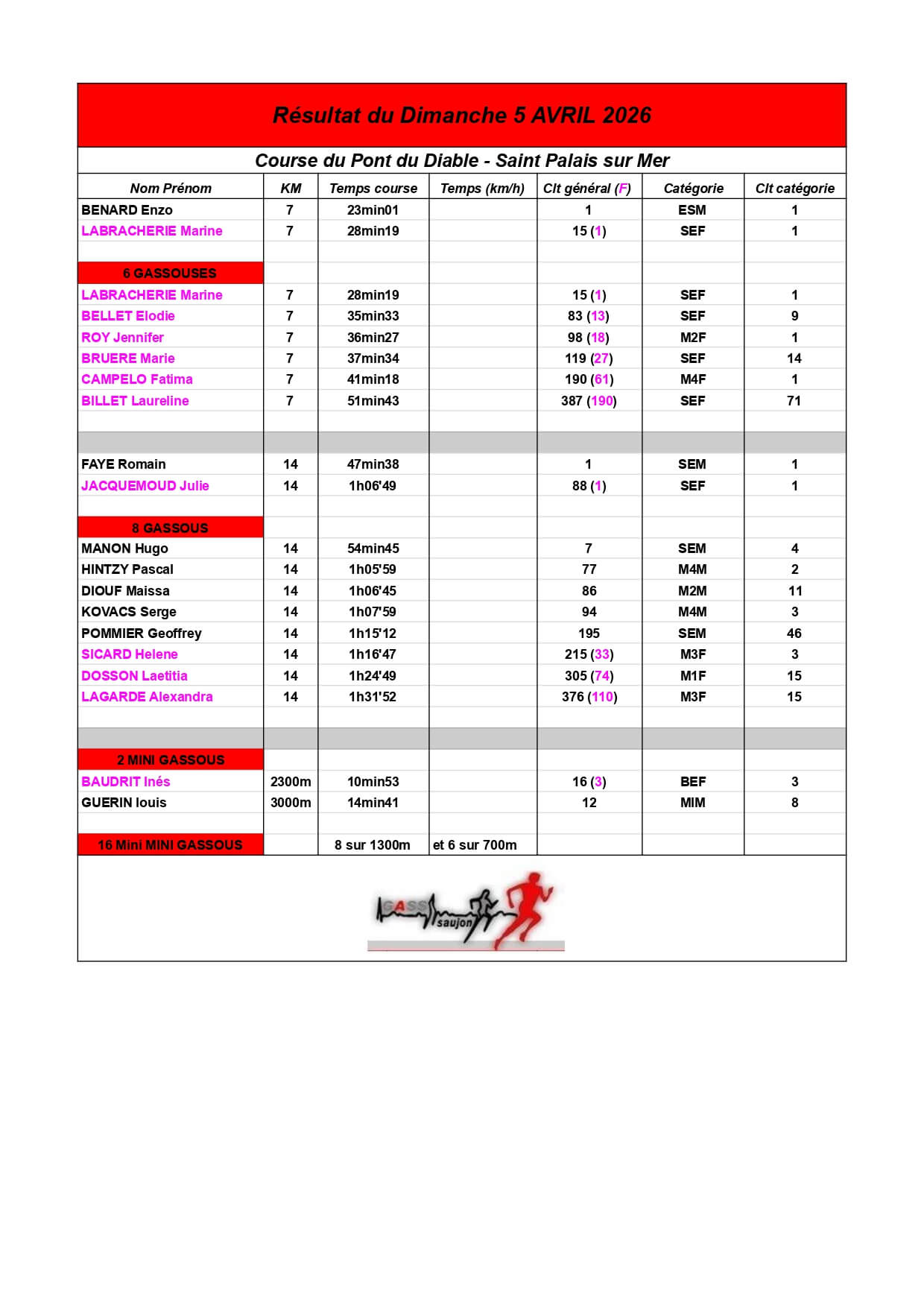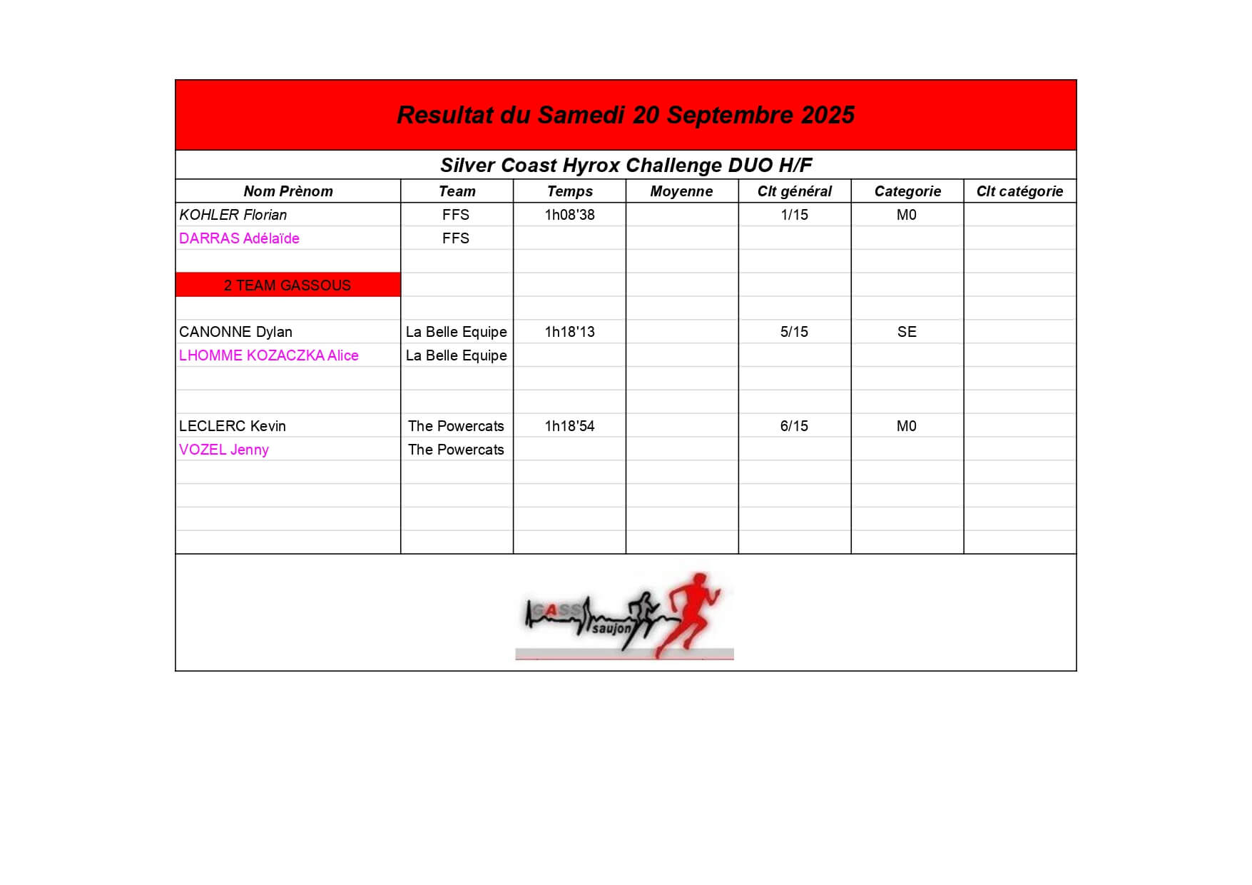 Nous sommes fiers de nos athlètes, petits et grands, qui portent haut les couleurs du GASS à chaque défi sportif !